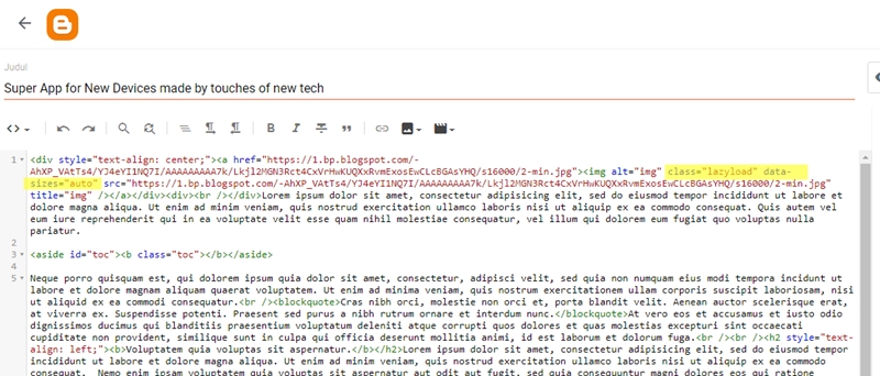 Every time to add an image in an article or anywhere you have to insert the Lazyload Image code in it to speed up loading on the blog